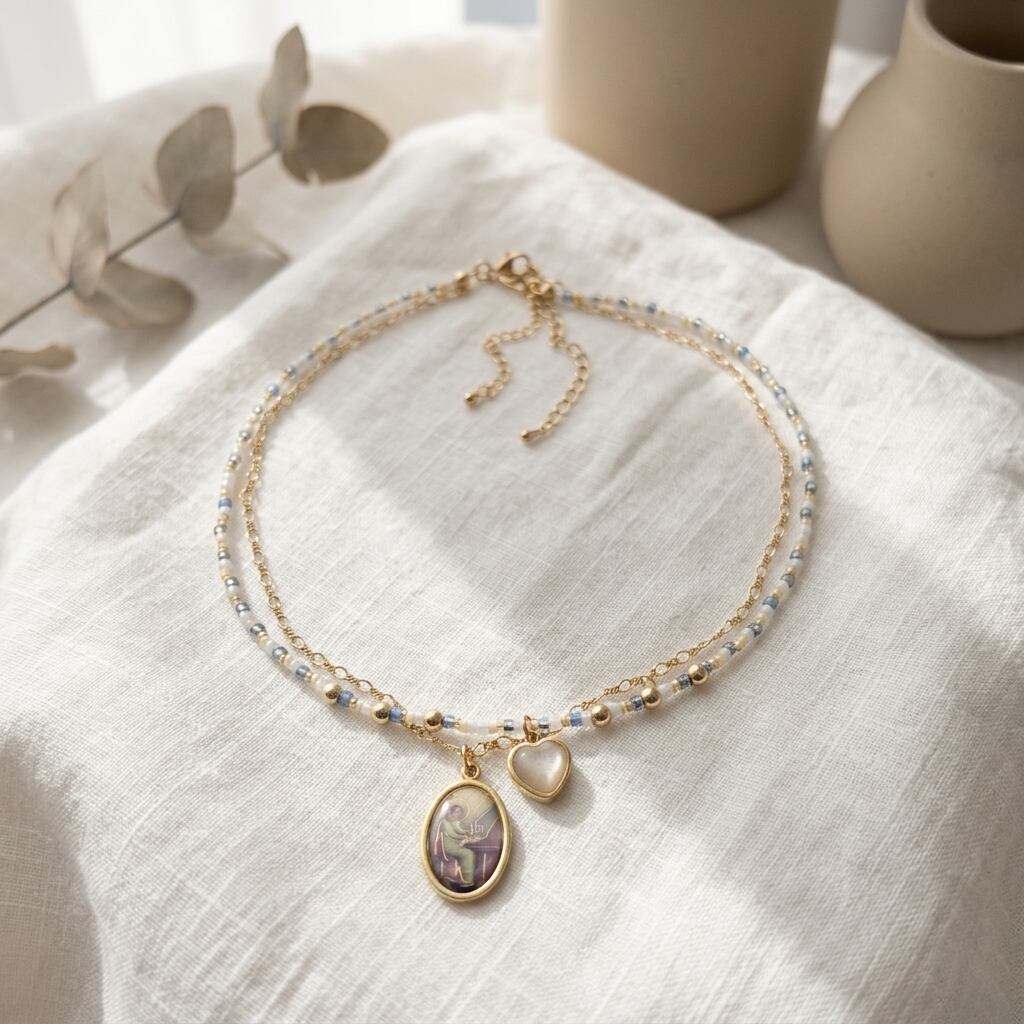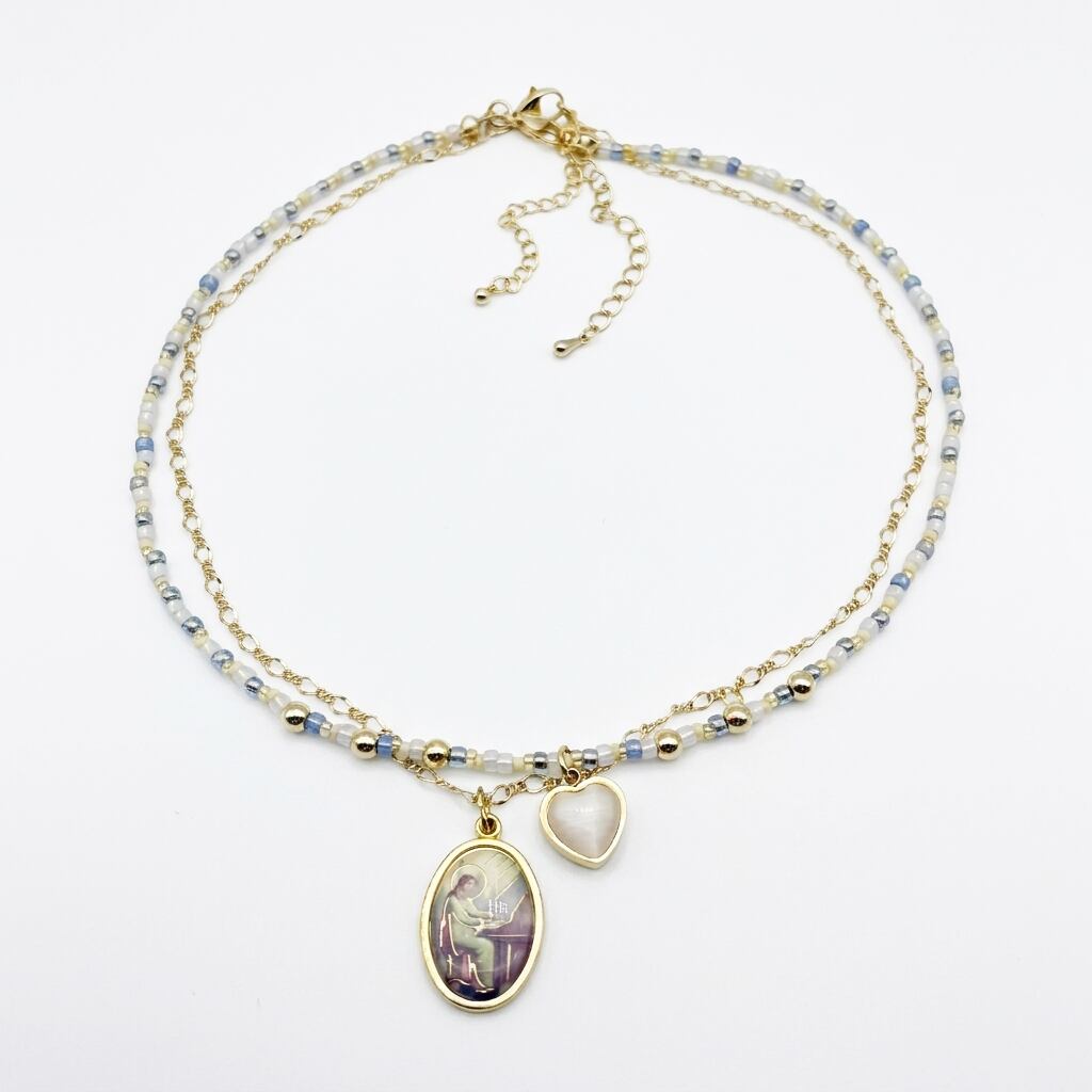 ブルーとホワイトビーズが爽やかなビーズネックレス。 ゴールドの華奢なチェーンと相性も抜群。 2つでセットの商品となります。 ■カラー:ゴールド/ブルー ■全長約(留め具部分含む):約39cm ■アジャスター:約6cm ■チェーン幅:約3mm ■素材:真鍮/ガラス ■発送:3〜4日で発送 ※水や汗等、摩擦による色が変わる可能性が ございます。使用後は柔らかい布で拭いて ください。