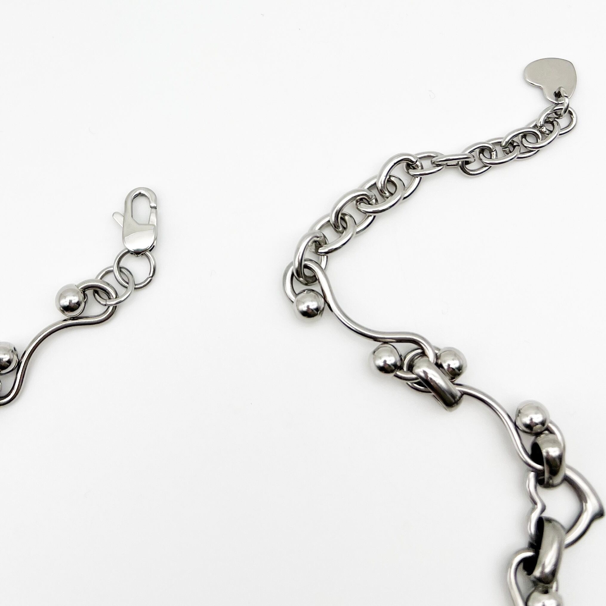 やわらかな曲線とシルバーの艶感が、首元にさりげない女性らしさを添えます。