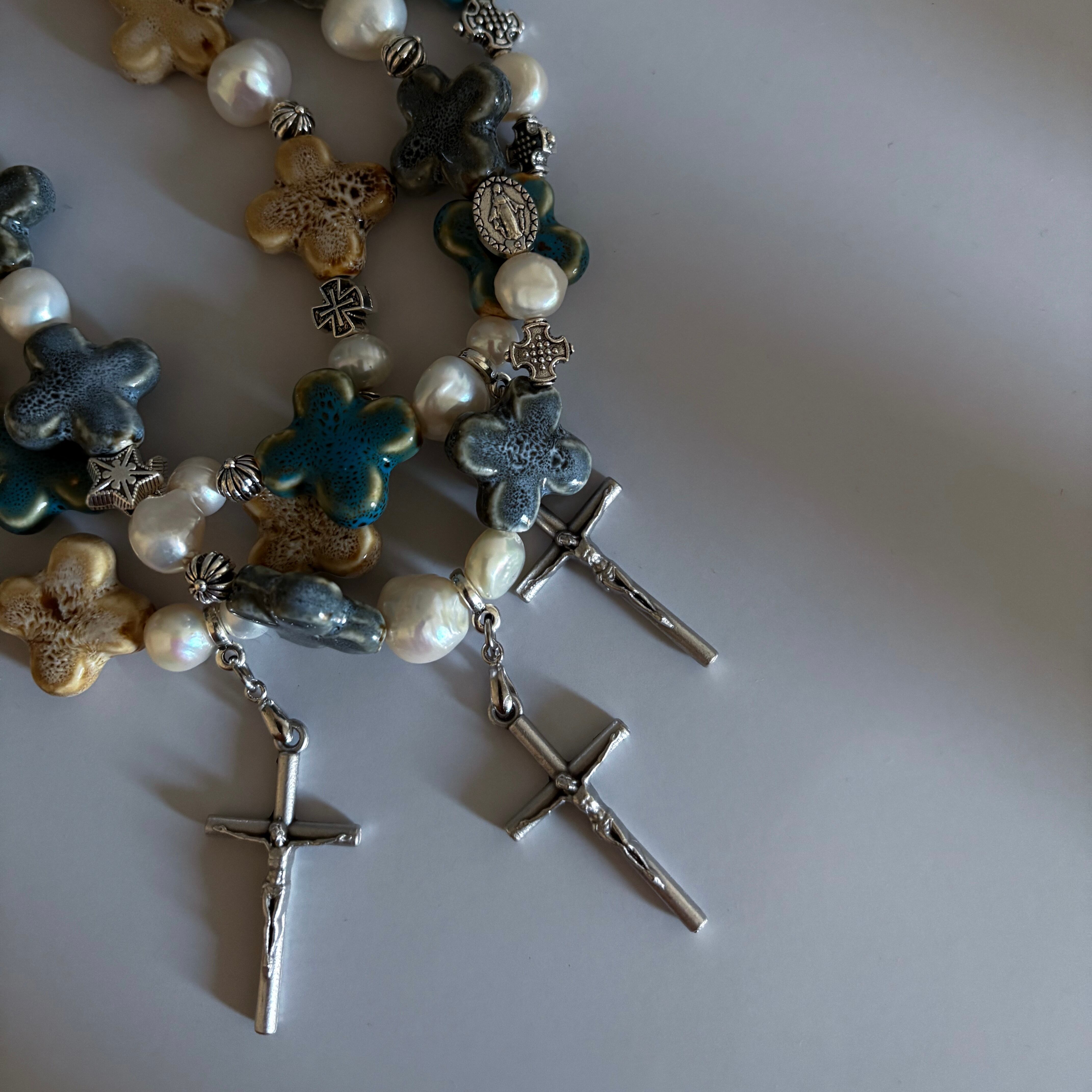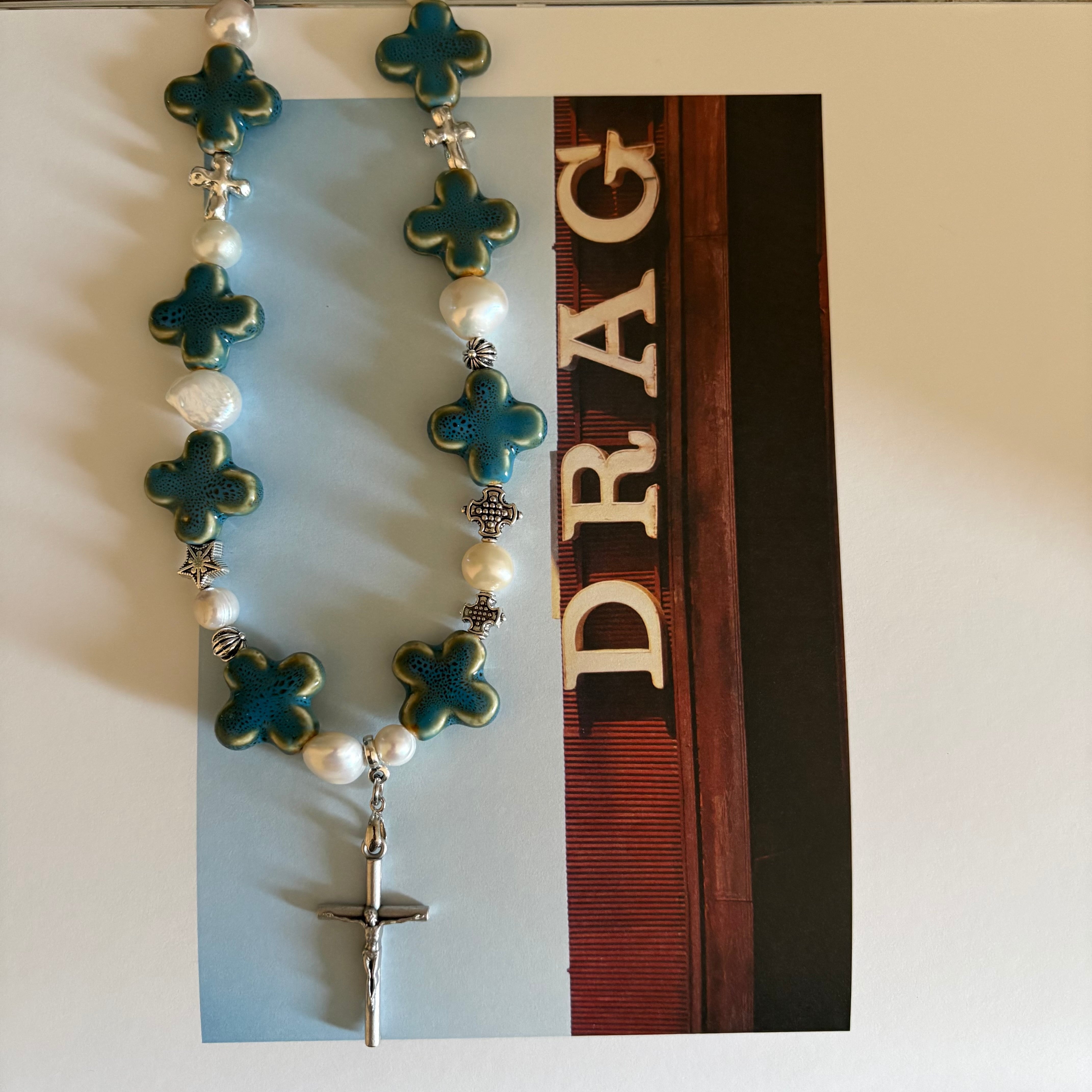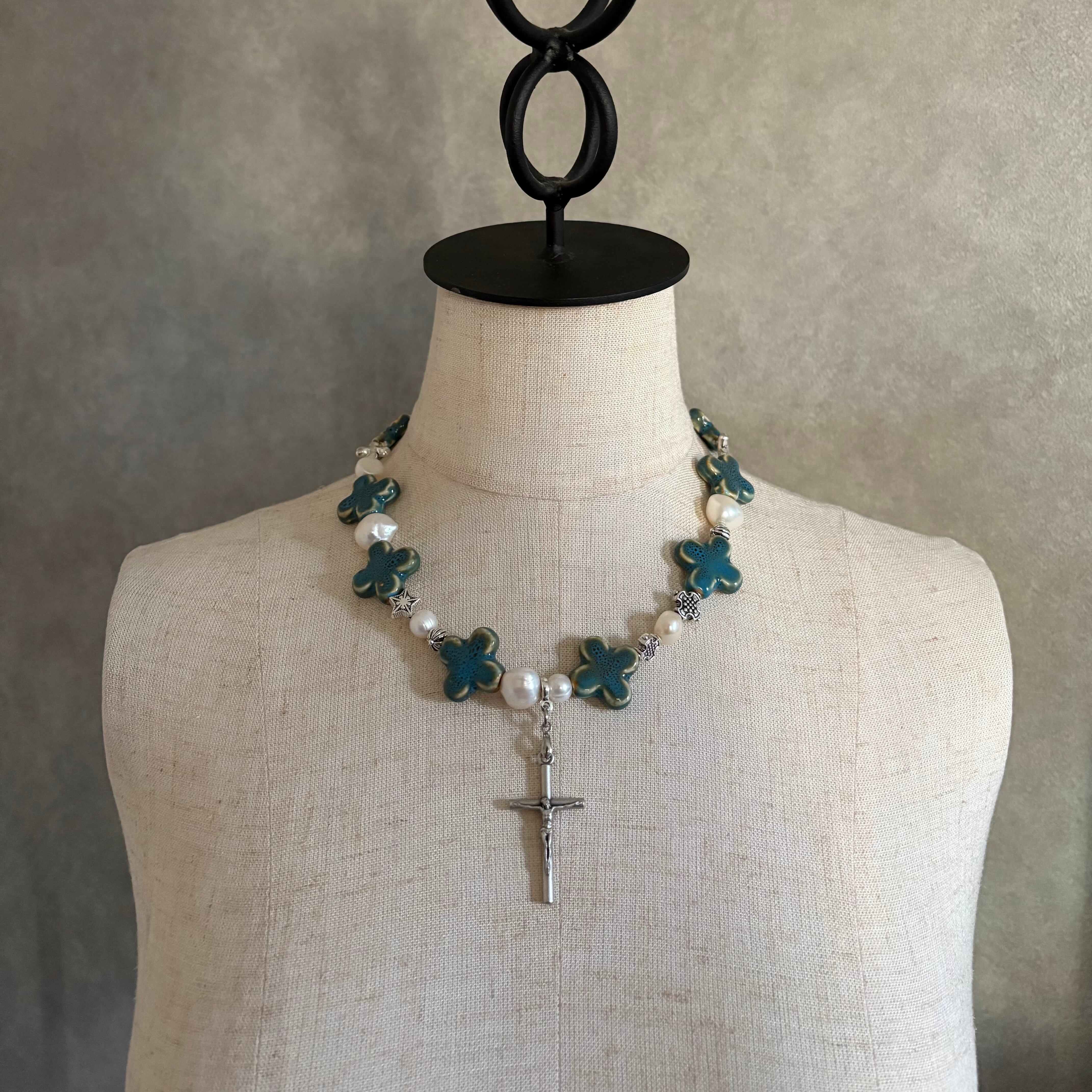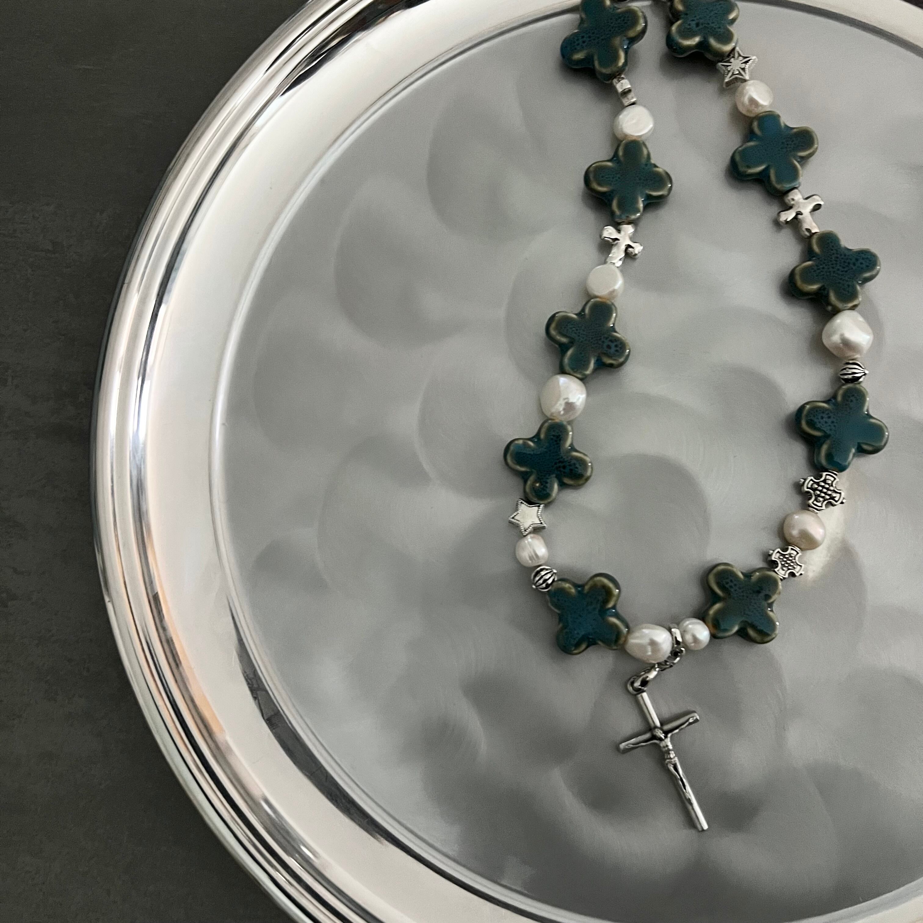 CROSS BEADS NECKLACE #3 BLUE GREEN