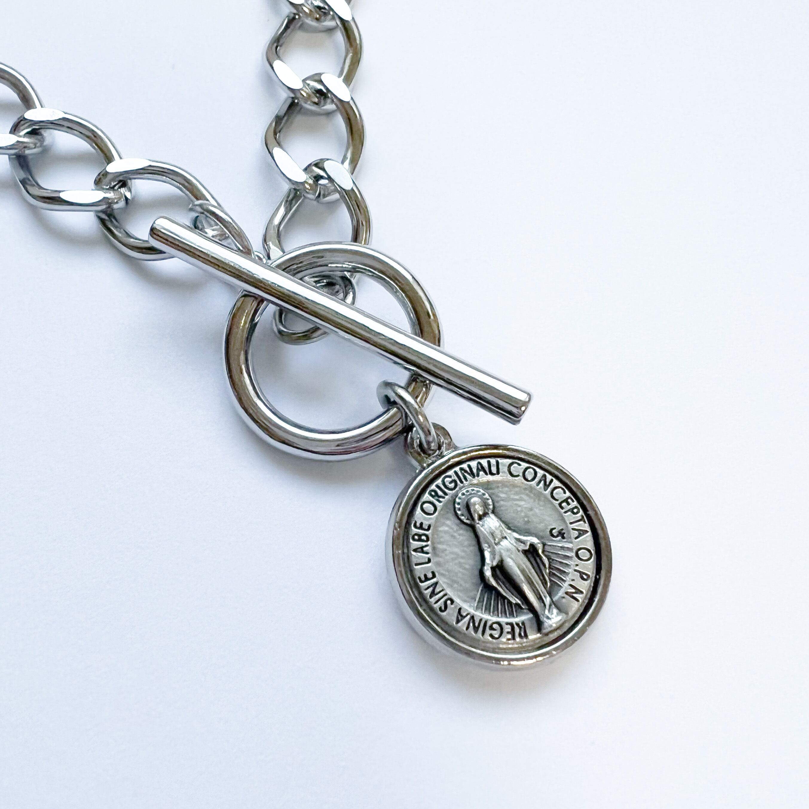 存在感のあるメダイコインと太めのチェーンが