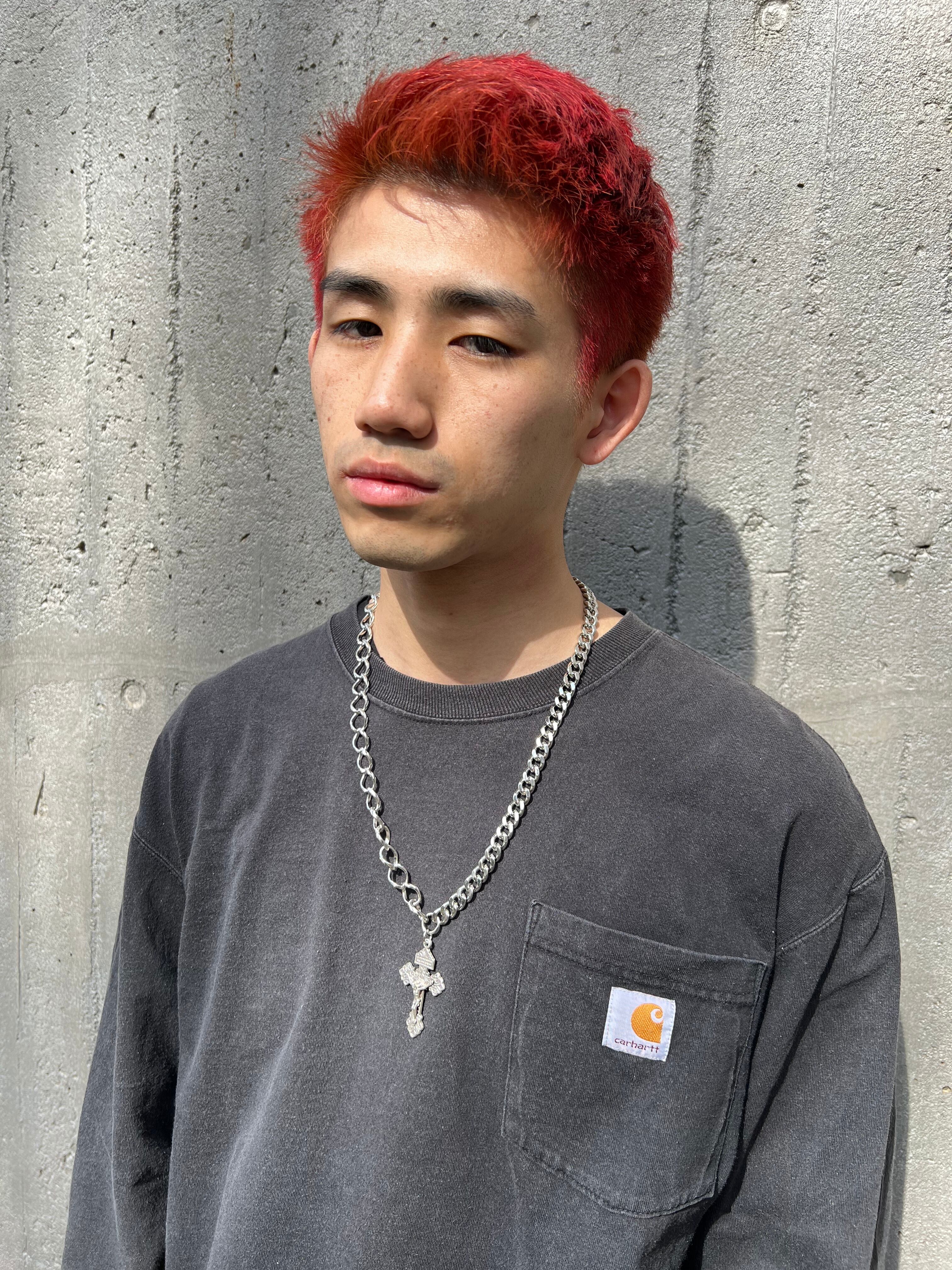 異なる2種類のチェーンを組み合わせたオリジナルネックレス。