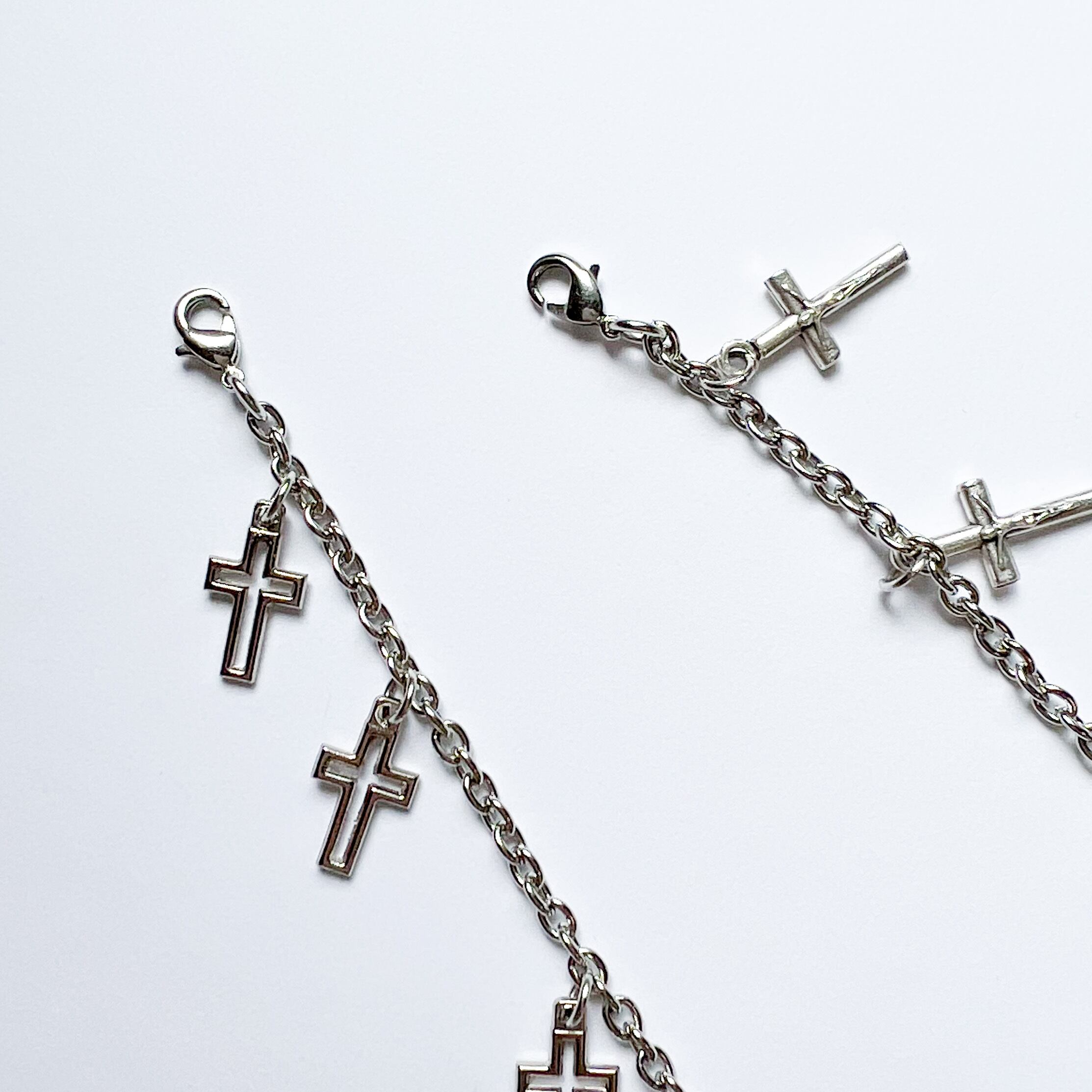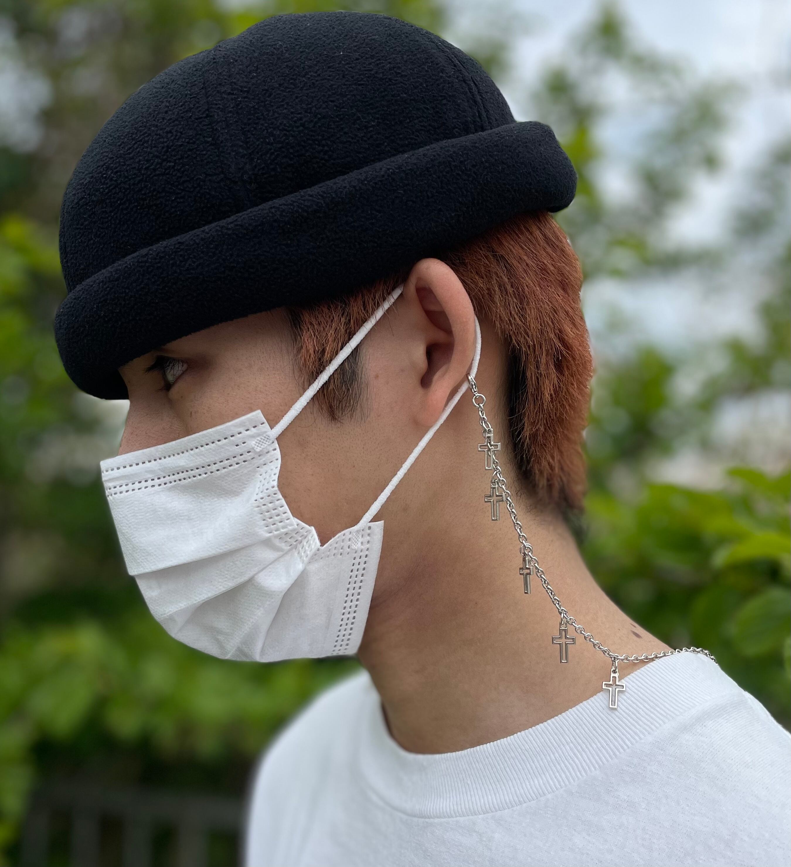 異なるデザインのミニクロスを左右に5連付けしたマスクチェーン。