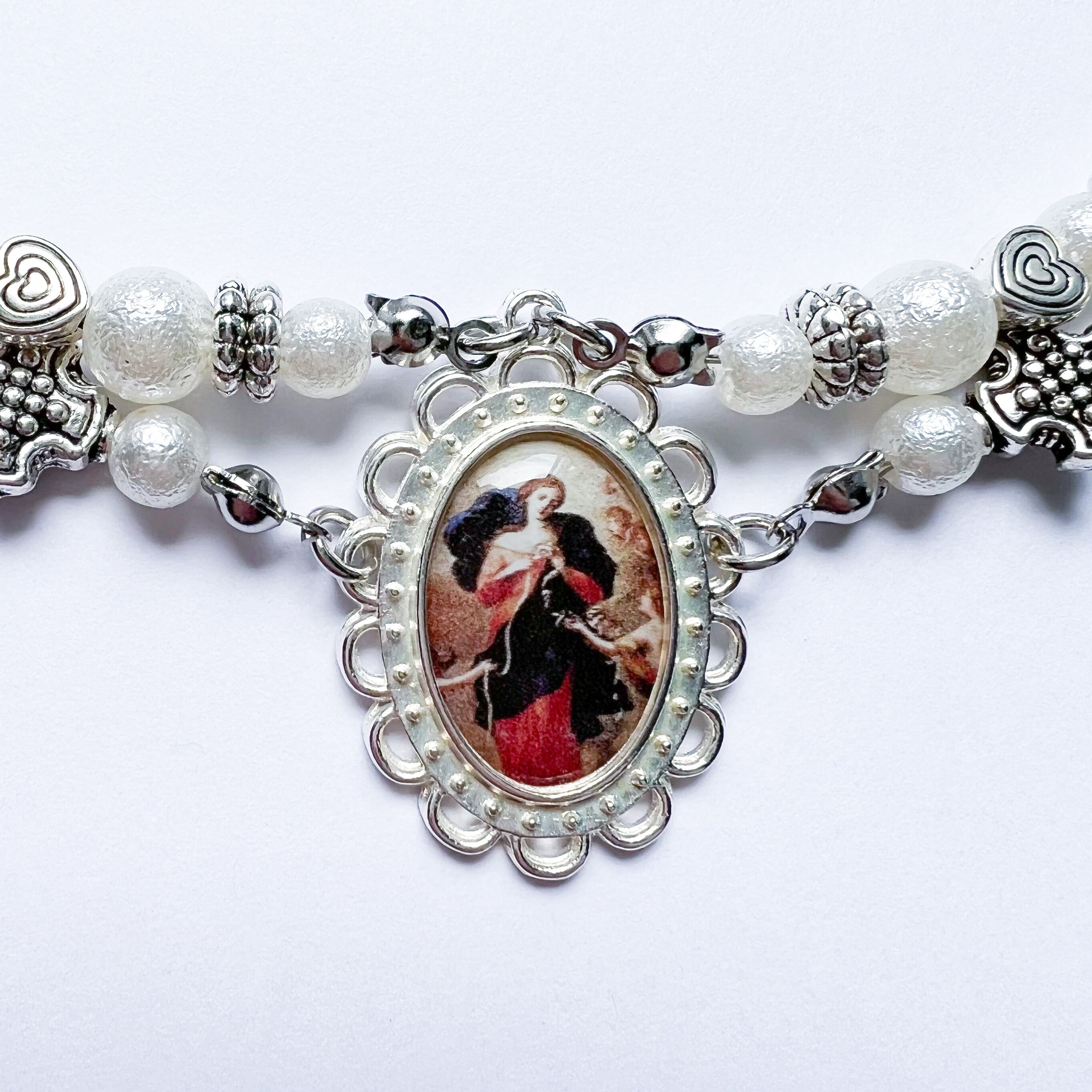 メインには、紐を解くマリア様が描かれたメダイを採用。