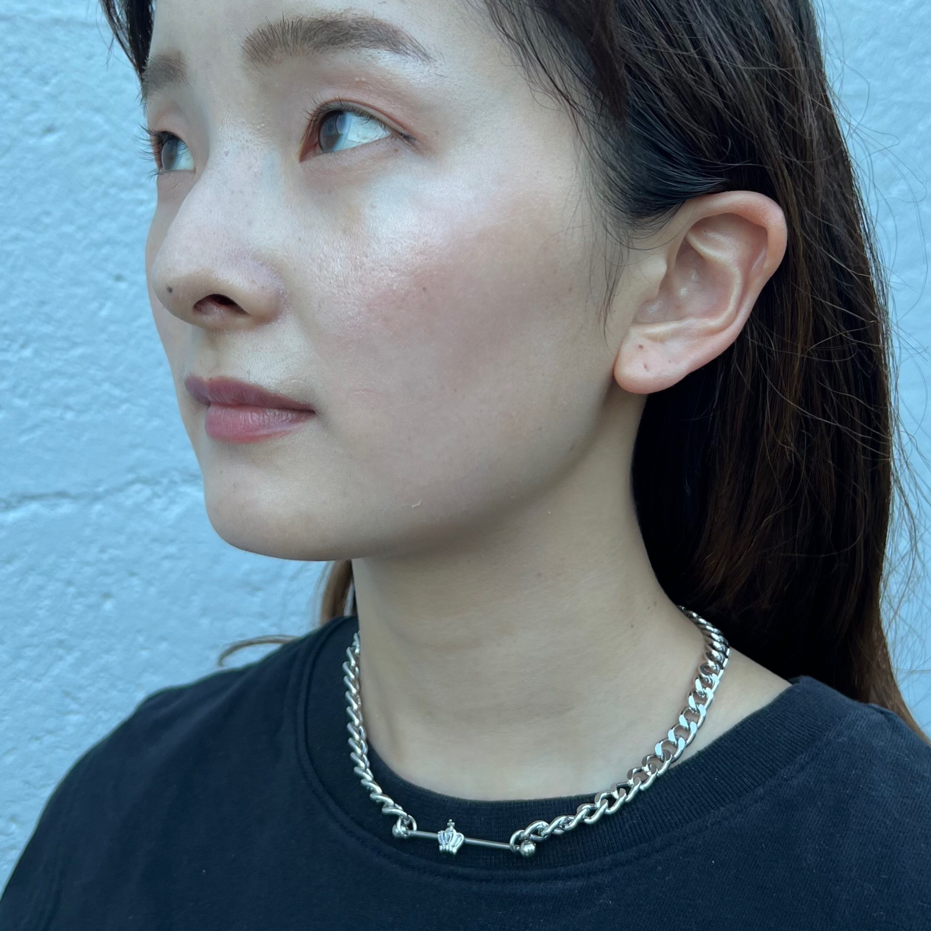 インダストリアルピアスをチャームとして採用したネックレスです。