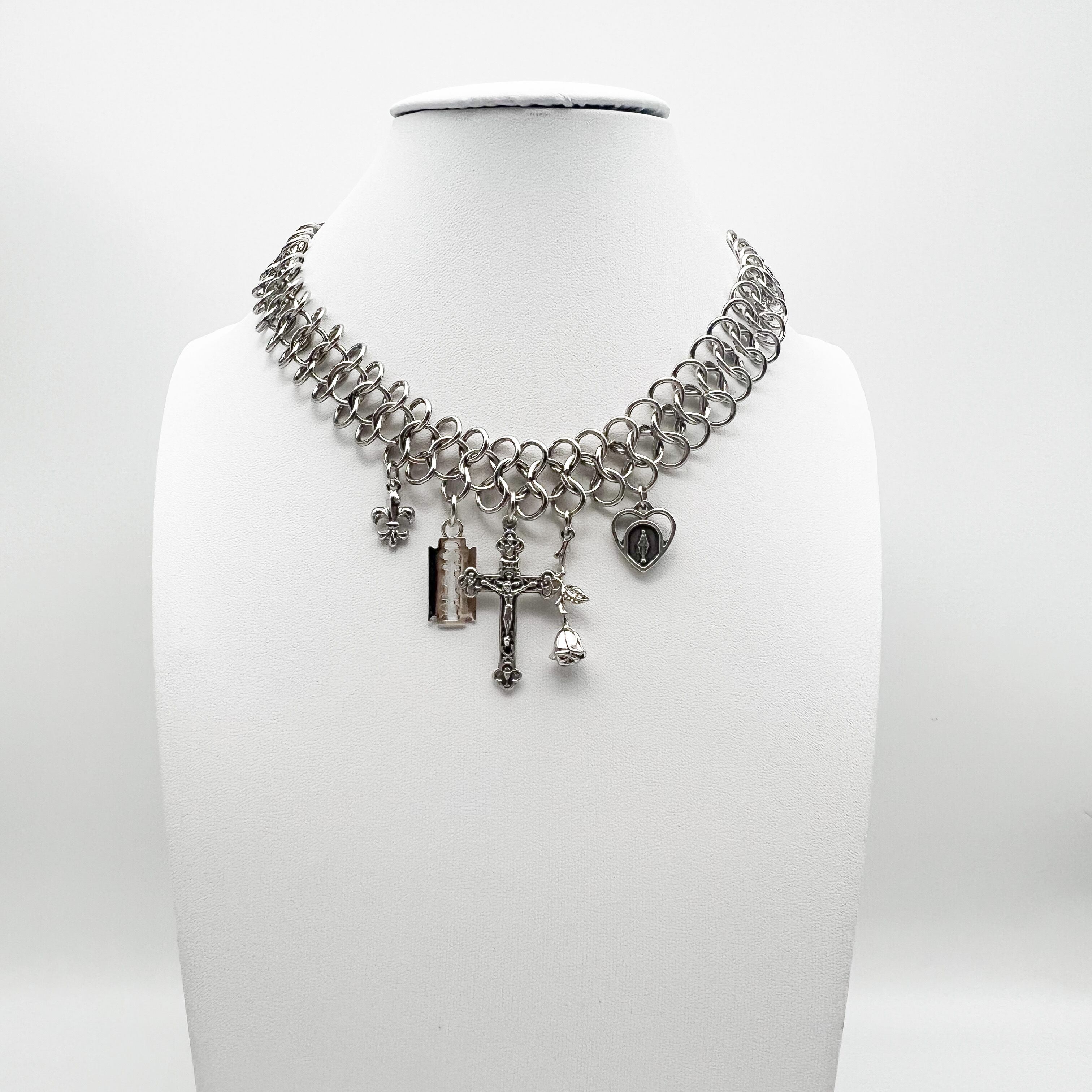 レースデザインのチェーンをチョーカー風に