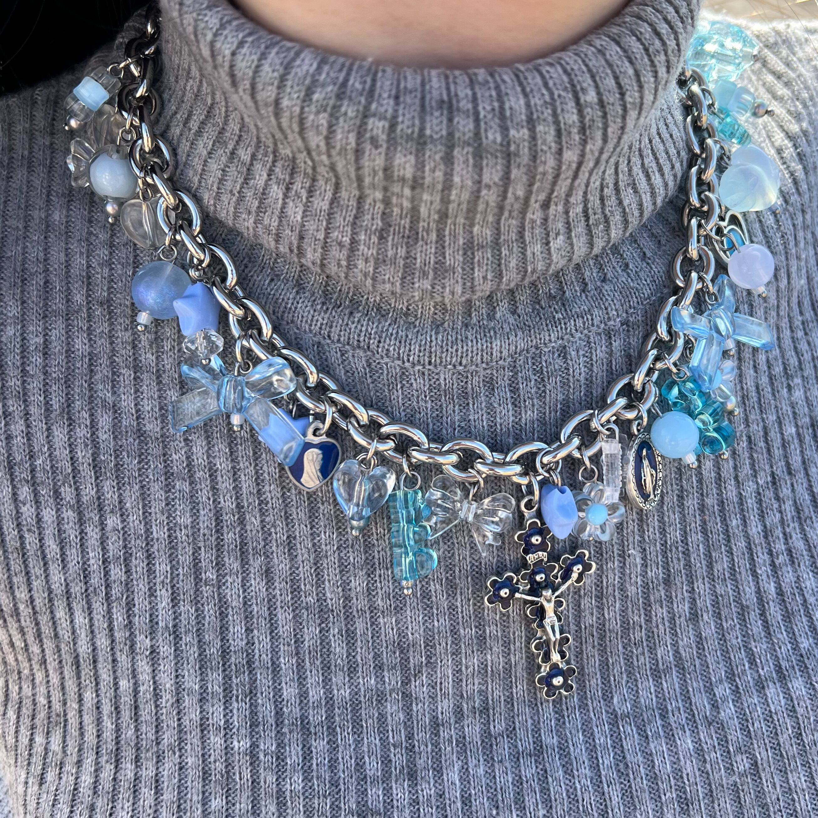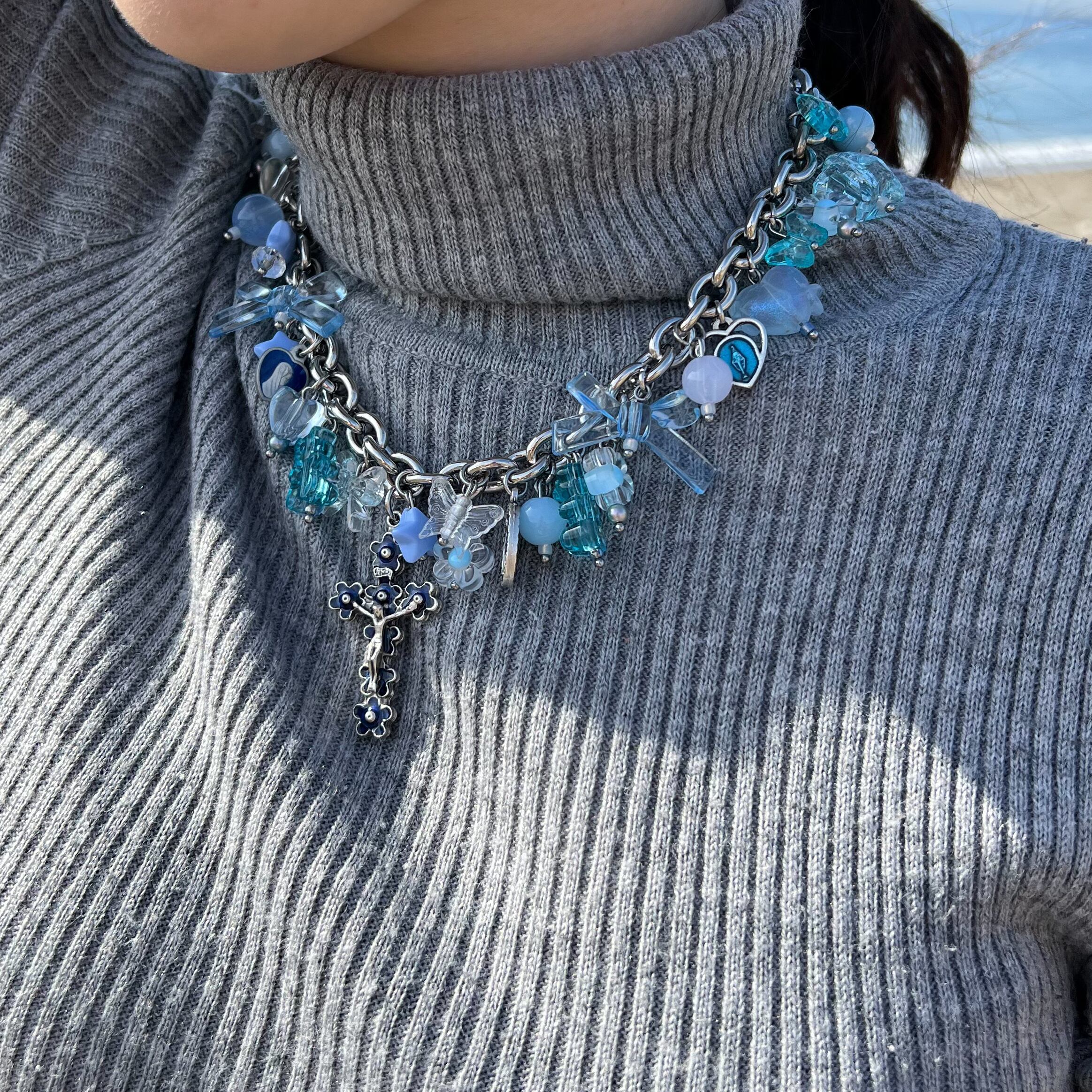 ALL BLUE CLEAR BEADS NECKLACE