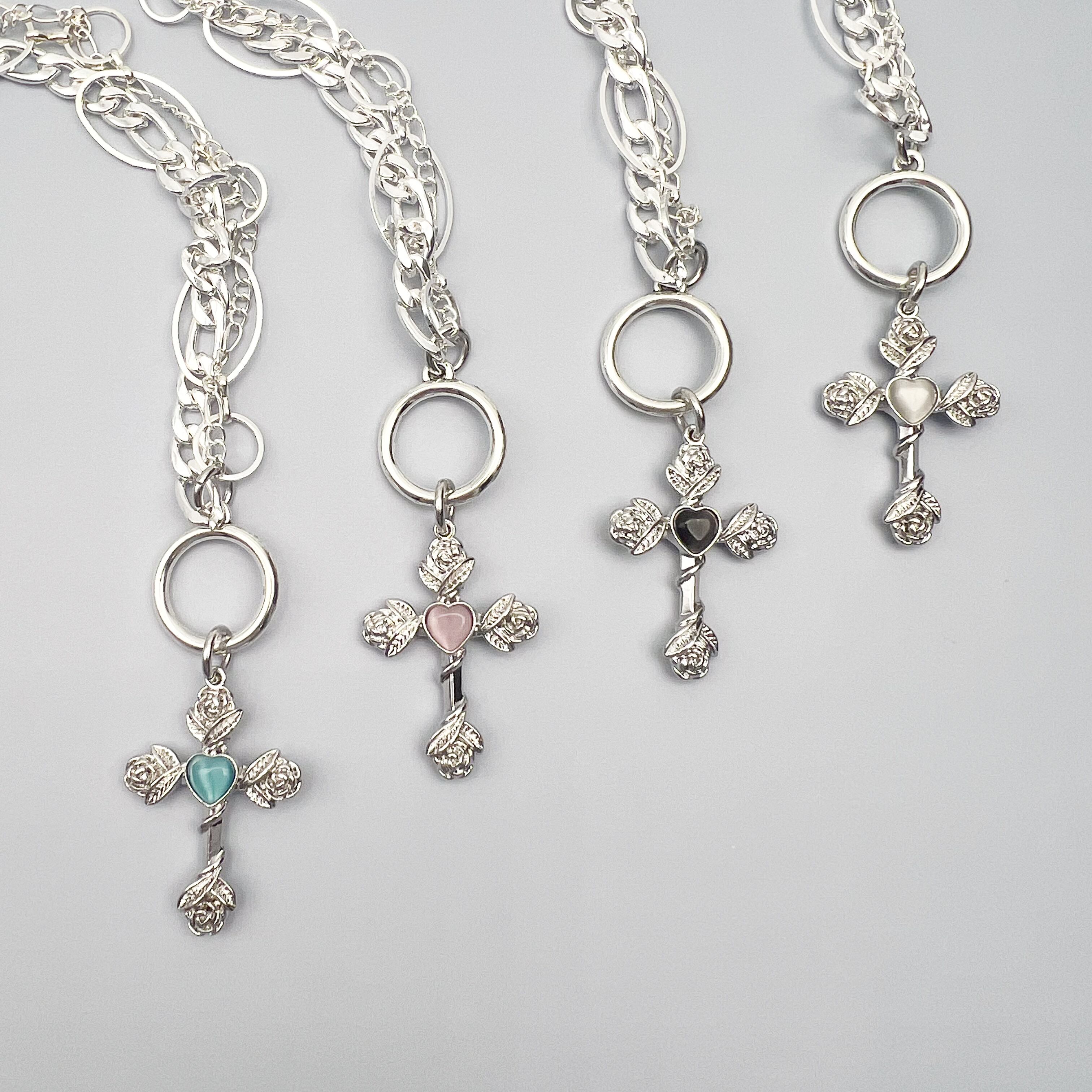 チャームはハートのストーンが装飾されたクロスをチョイスしました。